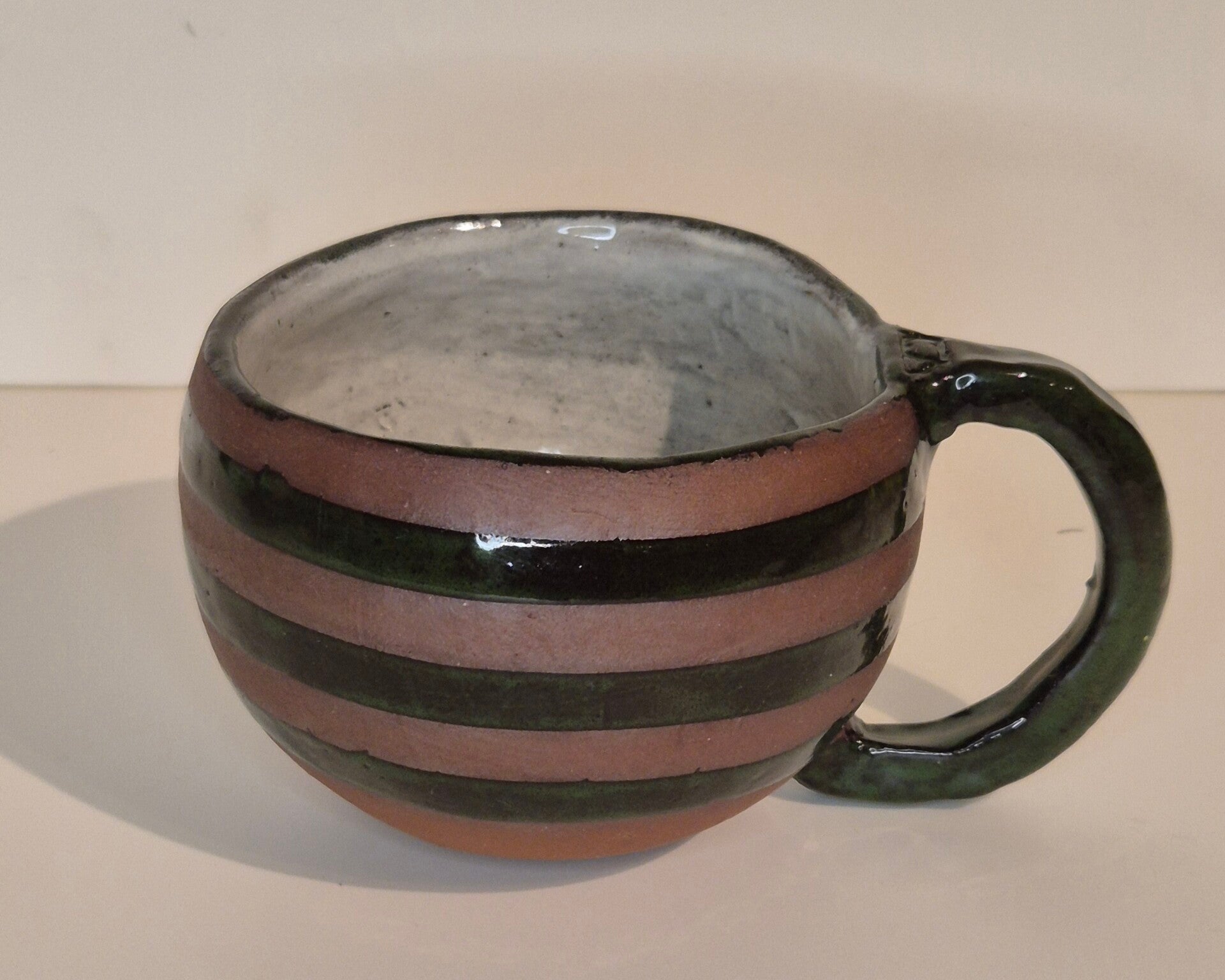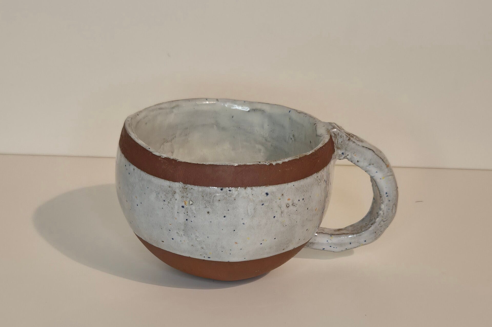 Geen strakke lijnen uit een fabriek, maar de authentieke sporen van de maker. Elke mok heeft een uniek lijnenspel en een robuuste textuur die uitnodigt om vastgehouden te worden. Van het speelse contrast tussen de aardse klei en de glanzende glazuren tot de krachtige, handgevormde oren.